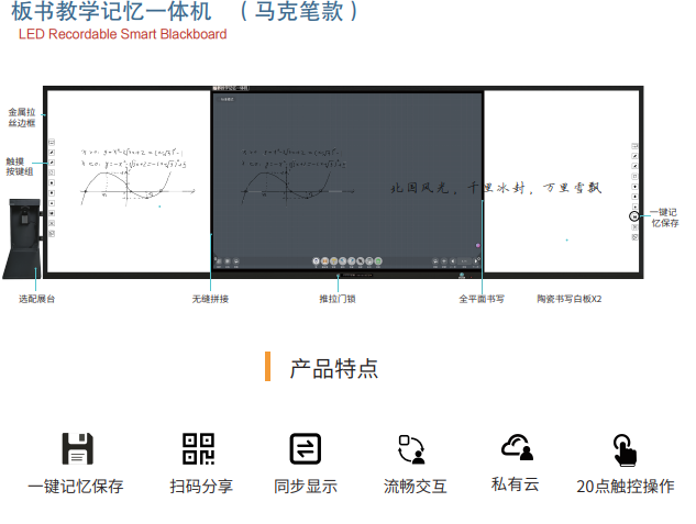 傳統黑板板書,由于空間有限,老師在授課的過程,往往是邊寫邊擦,擦除后內容也就沒了。一鍵記憶,能夠將老師板書內容實時、自動存儲,解決了板書內容擦除即清空的困擾。