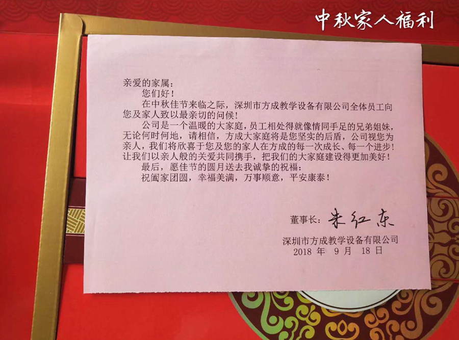 借此中秋佳節(jié)之際,方成教學(xué)為您寄出了節(jié)日的慰問(wèn)禮品,并免費(fèi)贈(zèng)送設(shè)備管理系統(tǒng)一年,感謝我們一路走來(lái),都是在您的支持和信任下