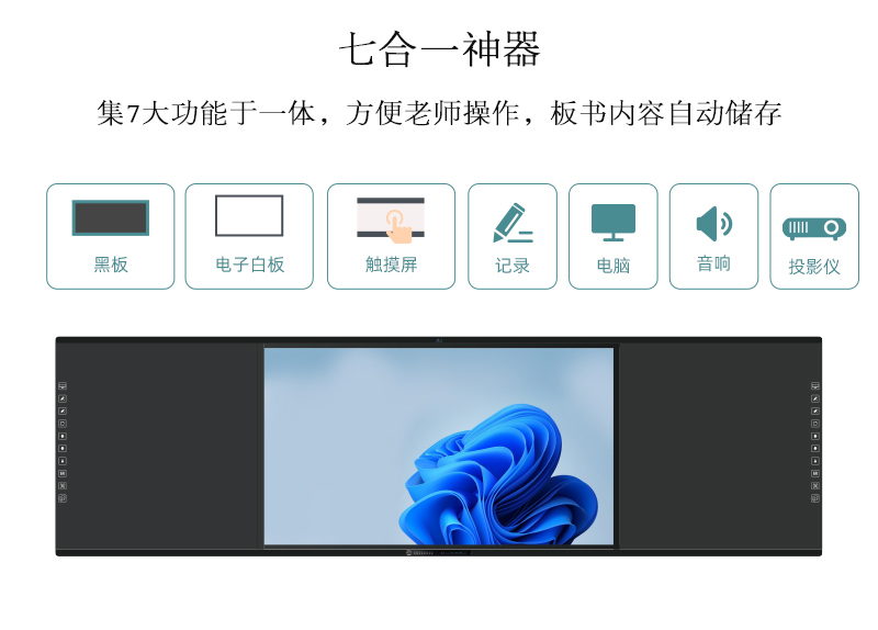 板書教學記憶一體機-記錄板書內容、再現課堂過程、轉化教學資源,板書教學記憶一體機集六大產品于一機,在不改變老師板書習慣的前提下,實現傳統教學與多媒體設備的智慧融合,設定了有板書記憶、板書同步顯示、板書自動分享等多樣化功能,每一個功能的實現都賦予了自己的使命。