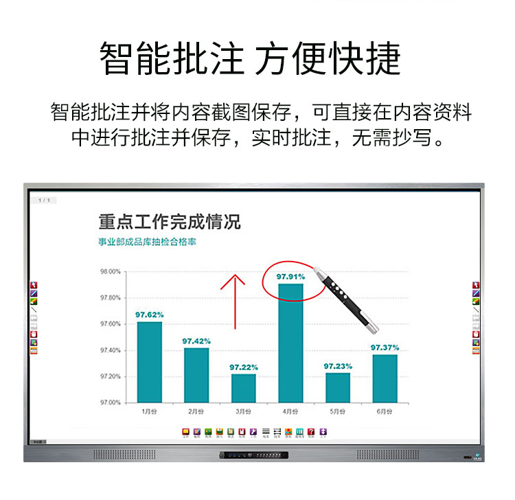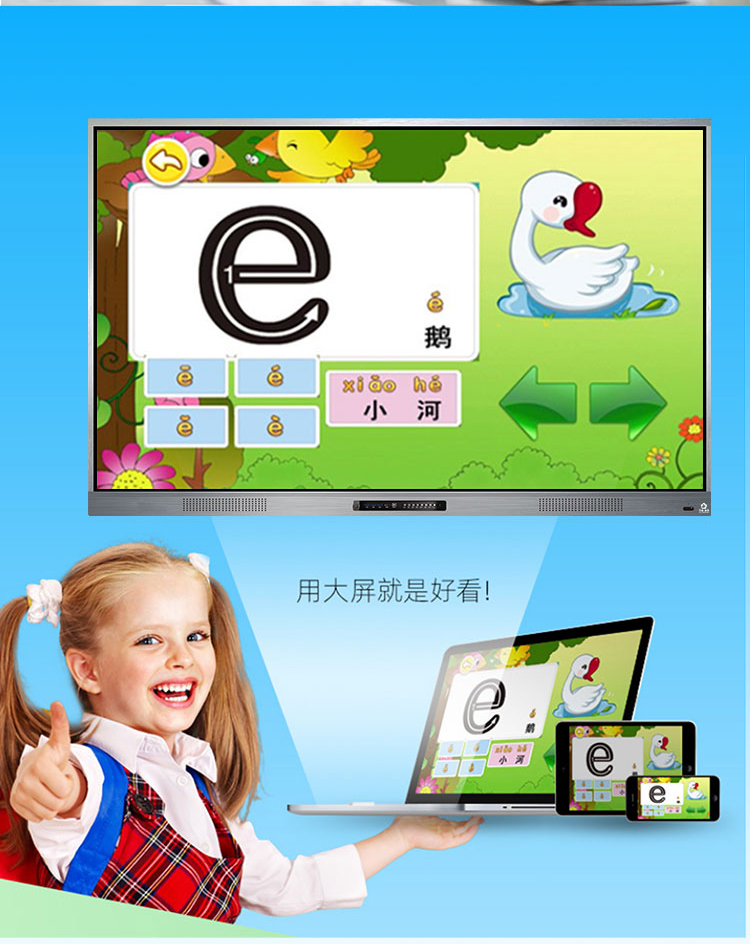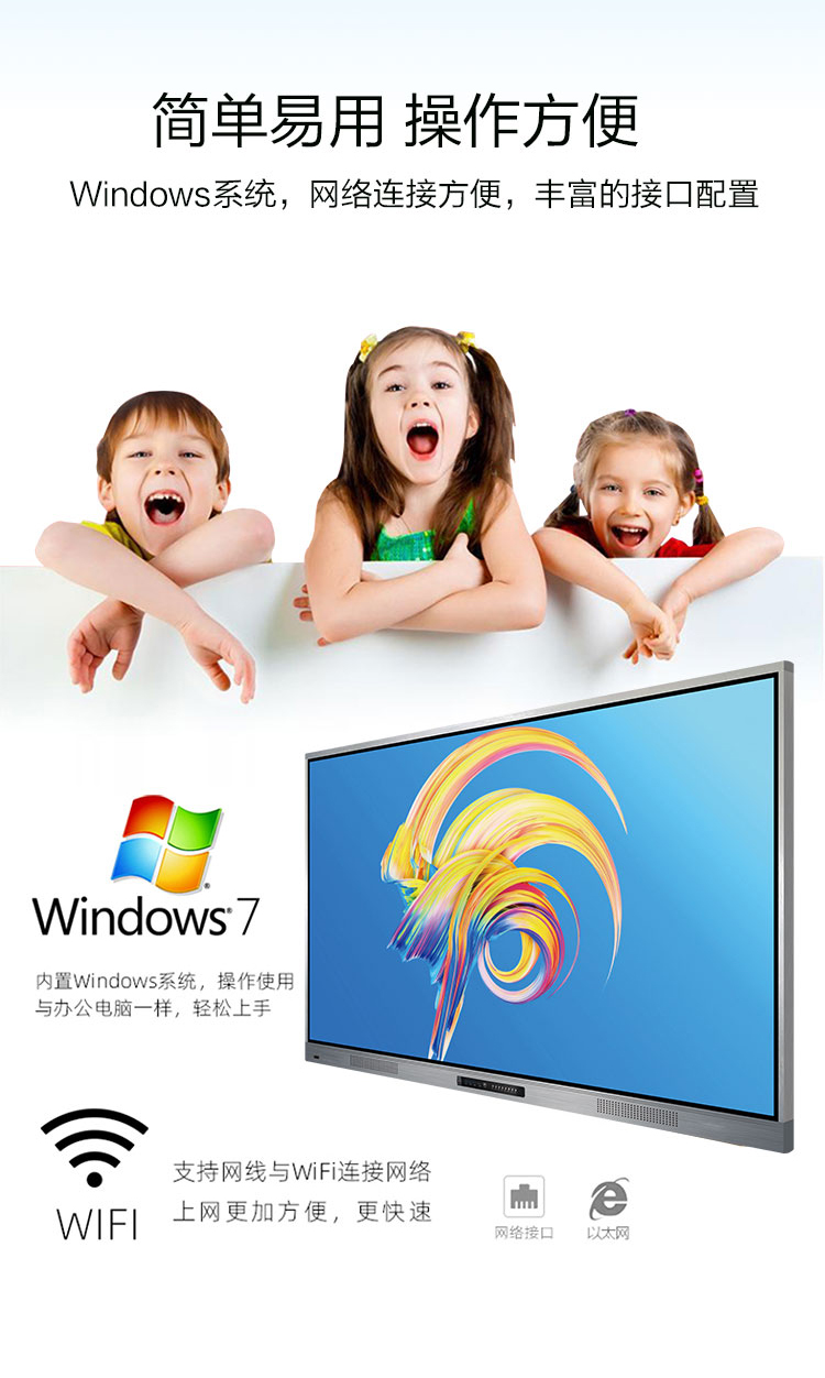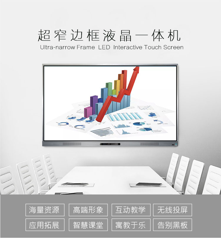 觸摸一體機(jī)-超窄邊框三等邊超窄邊框設(shè)計(jì),推拉門鎖保護(hù),4K超高清顯示,以人機(jī)交互的方式,搭載互動(dòng)白板和無(wú)線投屏軟件,實(shí)現(xiàn)多人書寫、互聯(lián)互通的互動(dòng)教學(xué)模式,豐富課堂內(nèi)容,提高學(xué)習(xí)氛圍。