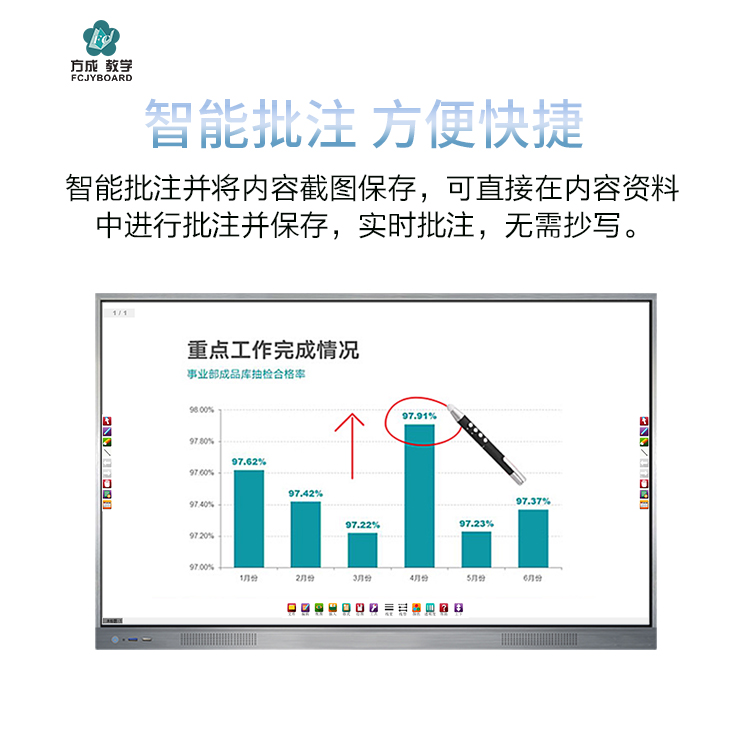 智能會議平板-超窄邊框三等邊超窄邊框設計,推拉門鎖保護,4K超高清顯示,以人機交互的方式,搭載互動白板和無線投屏軟件,實現多人書寫、互聯互通的互動教學模式,豐富課堂內容,提高學習氛圍。